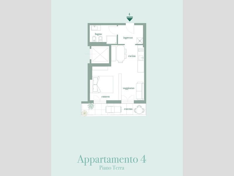 Limmobile si presenta come un raffinato open space composto da ingresso con armadio/lavanderia, cucina a vista, salottino e zona notte separati da un moderno mobile divisorio, oltre a un bagno finestrato con box doccia.