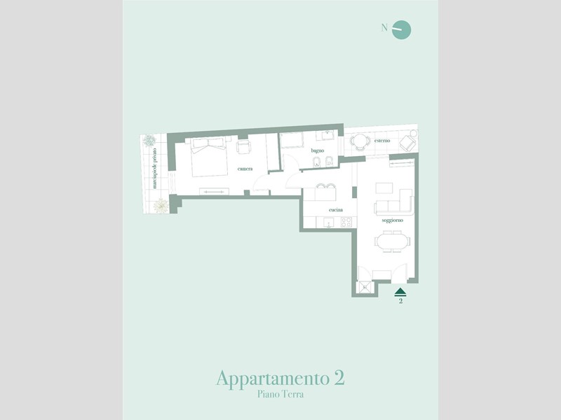 I 6 m² di spazio esterno rappresentano un angolo prezioso per colazioni allaperto, momenti di relax o piacevoli serate di coppia.