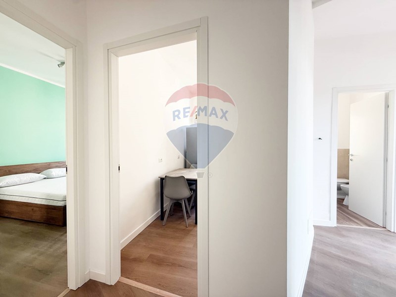 Lappartamento si presenta in maniera davvero curata: tre camere indipendenti, ciascuna già dotata di letto matrimoniale, armadio e scrivania, pronte per essere abitate, tutte e tre con condizionatore autonomo.