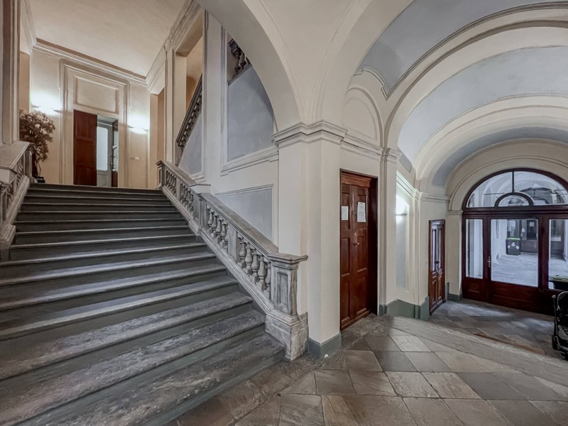 Le scale che conducono all'alloggio sono ampie e sontuose, il particolare pregio storico ha impedito l'installazione di un ascensore, ma possiamo assicurare che la bellezza e l'estetica ripagano ampiamente questo difetto.