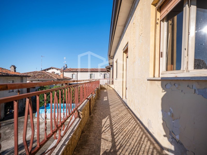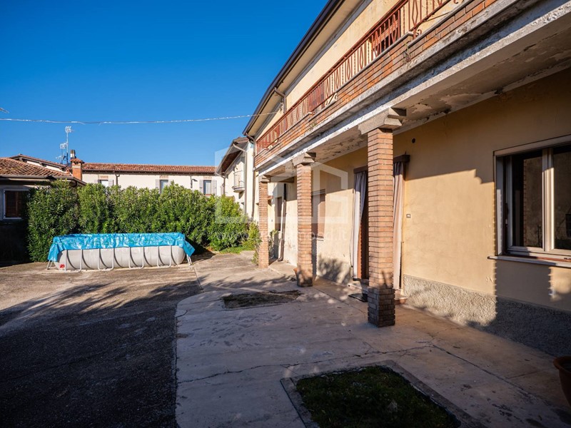 Attualmente l'intero comparto immobiliare è composto da: 4 unità residenziali per un totale di circa 400 mq calpestabili; doppio portico sul fronte, con loggia e balconata al piano primo; corte esclusiva sul retro; ampia corte di oltre 300 mq sul fronte; rustico con garage, trasformabile in ulteriore unità residenziale.