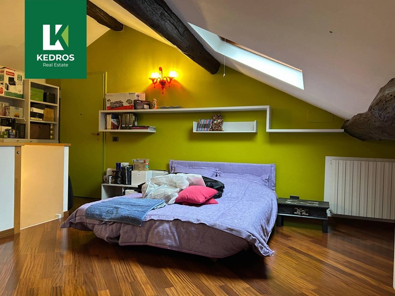 Salendo l'elegante scala interna, si raggiunge il piano superiore, un'oasi di pace interamente mansardata. È qui che si svela la camera padronale, un rifugio intimo e luminoso, servito da un bagno en suite per la massima privacy.