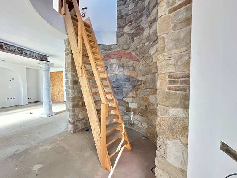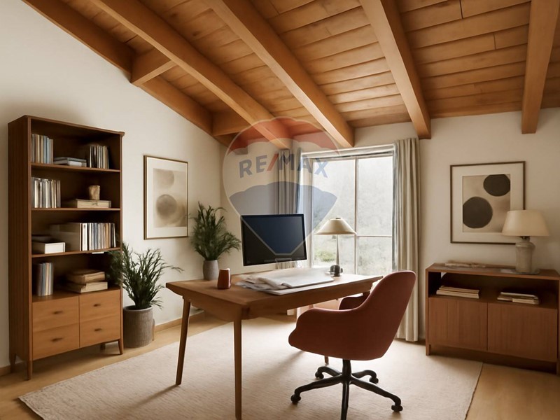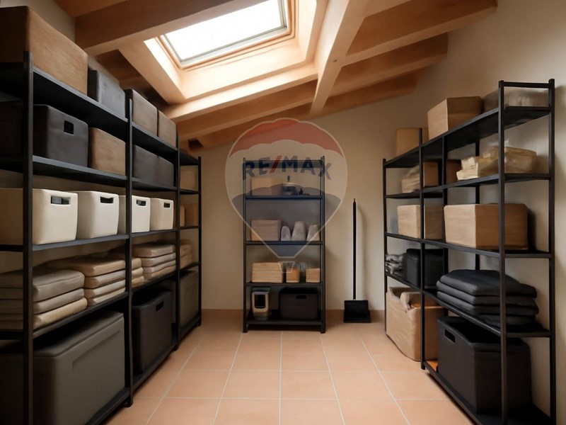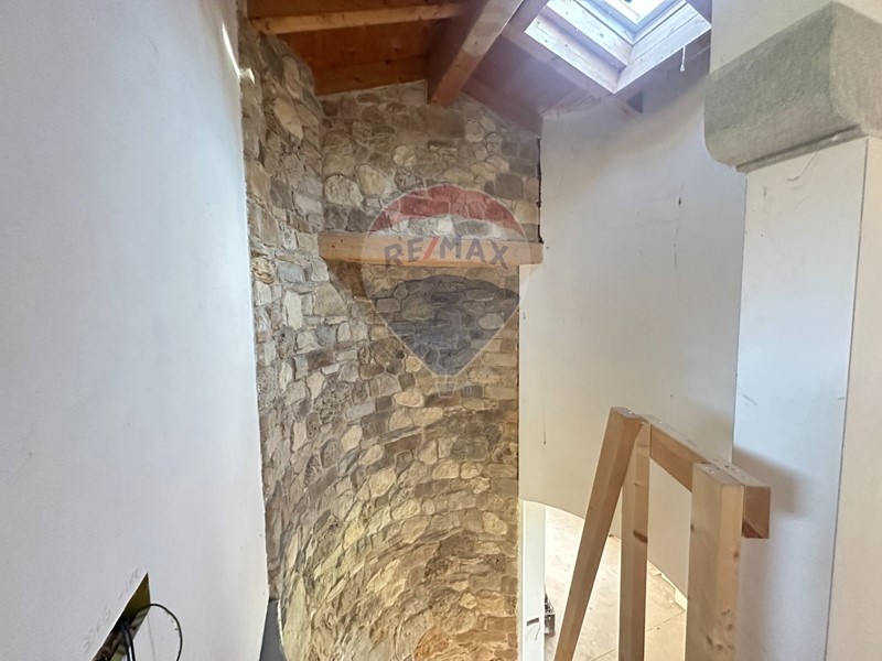 Una scala impreziosita da parete in pietra conduce al secondo e ultimo piano, dove la zona notte si sviluppa con una camera con bagno privato, uno studio con ripostigli e unulteriore camera da letto con cabina armadio. Gli ambienti sono caratterizzati da travi a vista, che conferiscono calore e charme agli spazi.