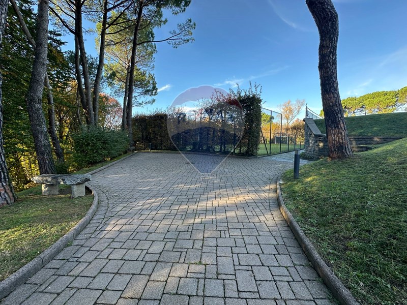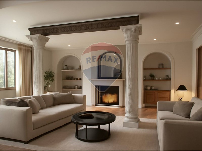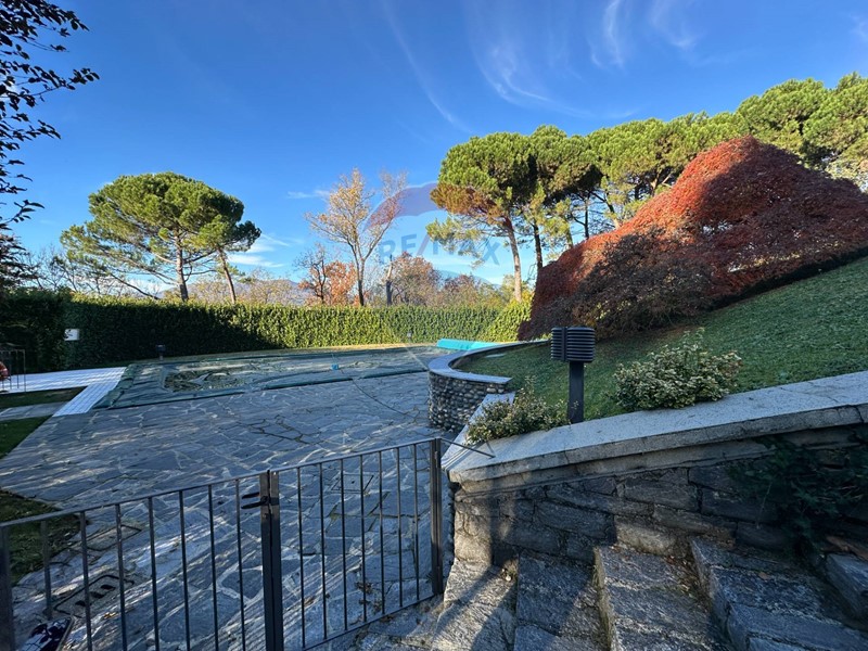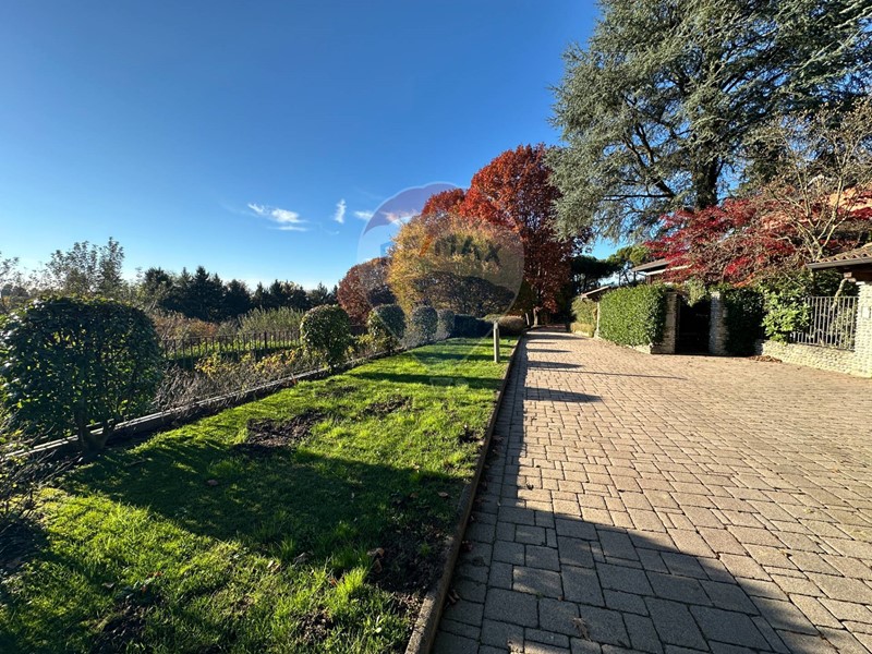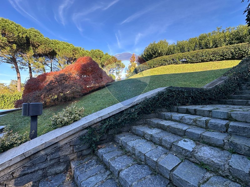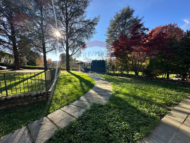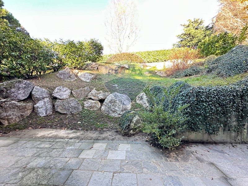 Al piano terra, un elegante ingresso introduce nellampio soggiorno, reso particolarmente accogliente dal camino con rivestimento in marmo e dalle ampie vetrate che donano luce naturale e accesso diretto al giardino privato.