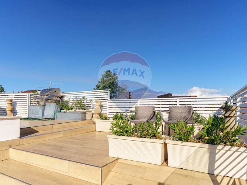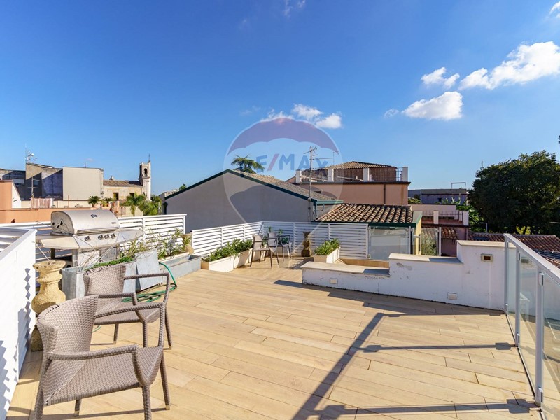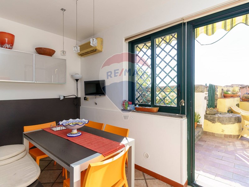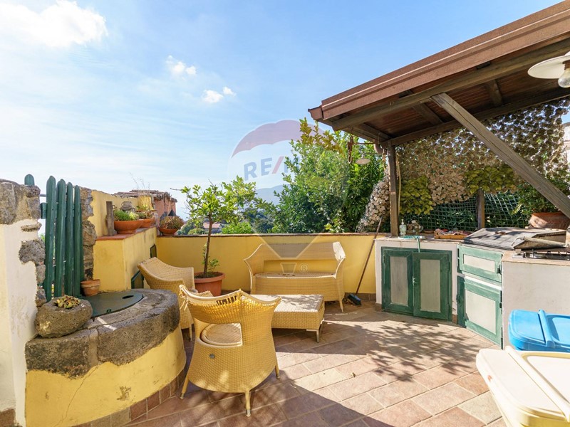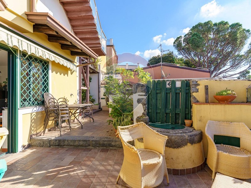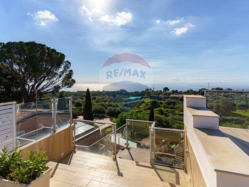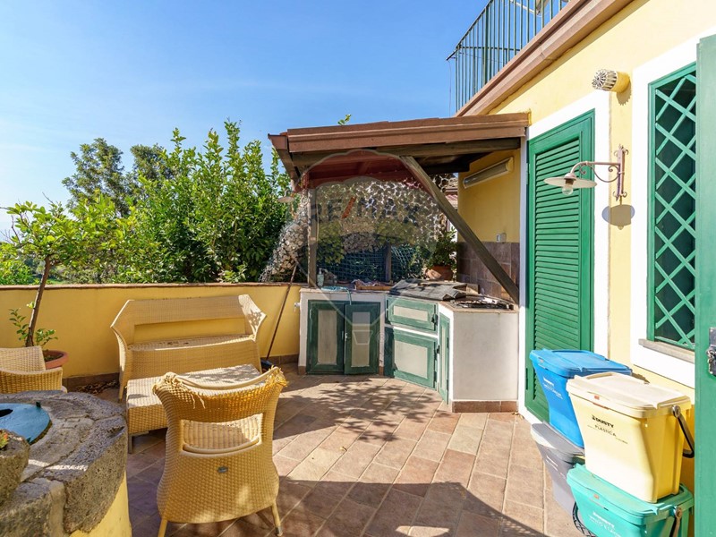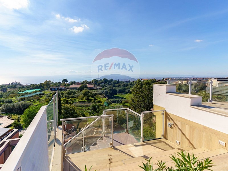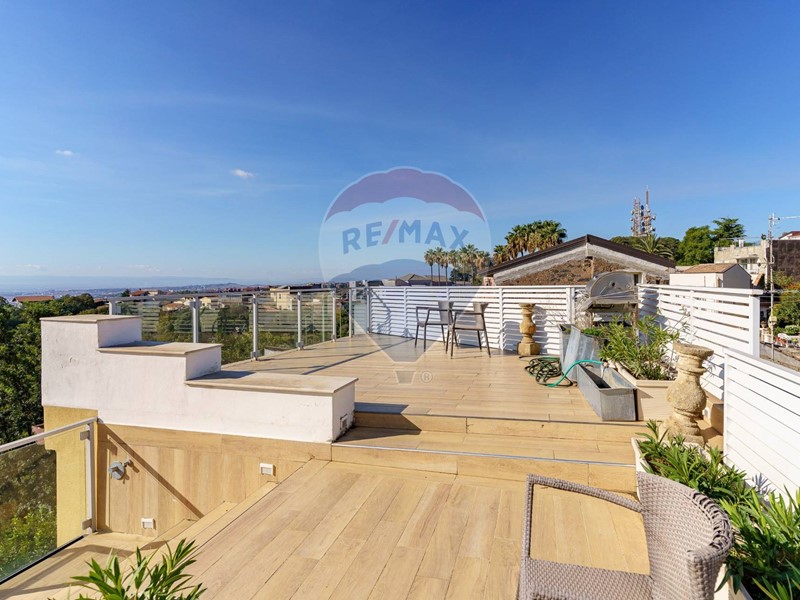 Al piano superiore la villa dispone di ampia terrazza con vista Etna e golfo. Zona ludica dovè apprezzare pranzi e cene in famiglia o tra amici. La terrazza totalmente ristrutturata è raggiungibile tramite rivista scala in ferro che la collega direttamente alla zona giorno del piano inferiore