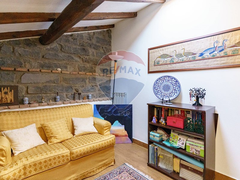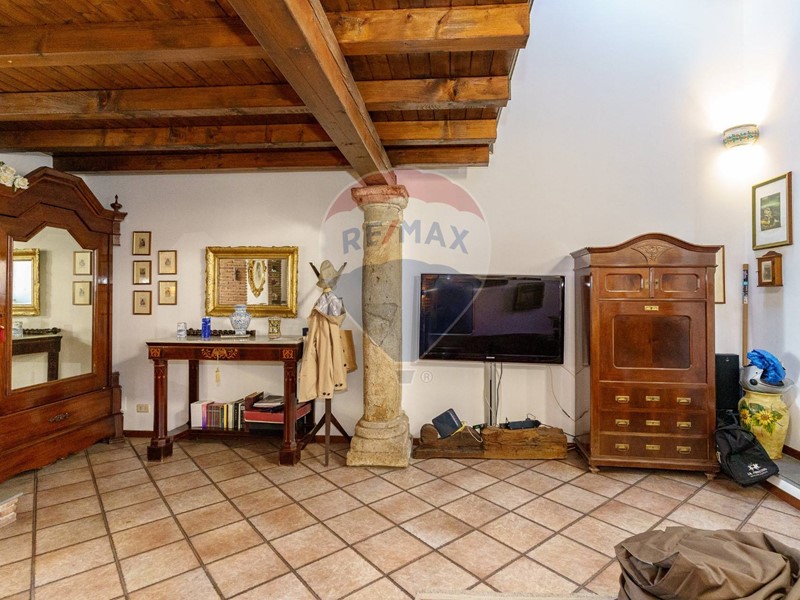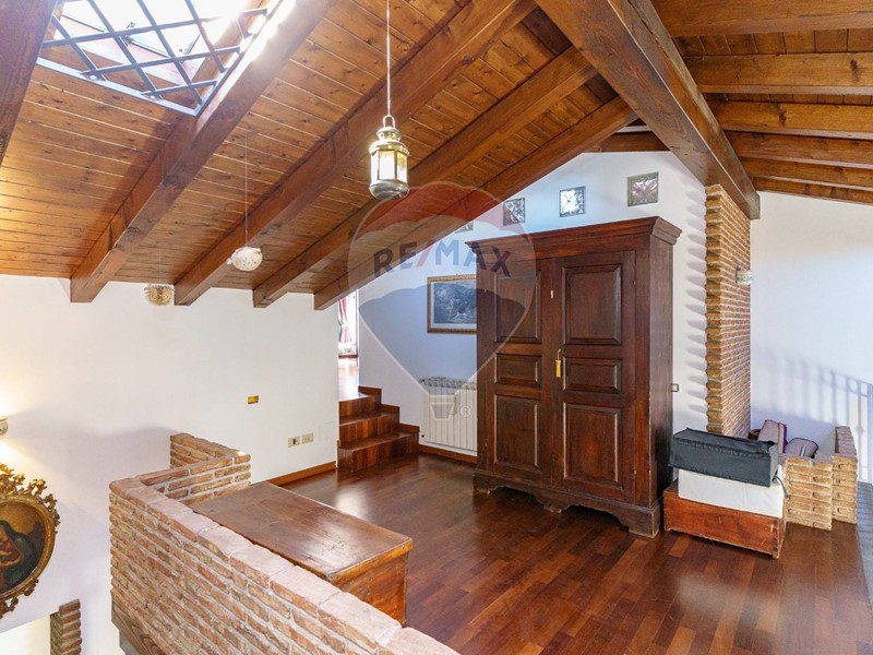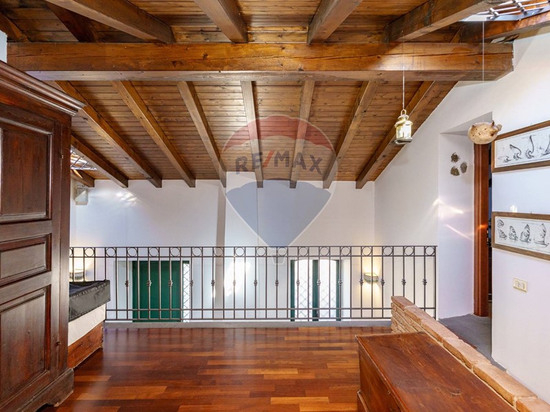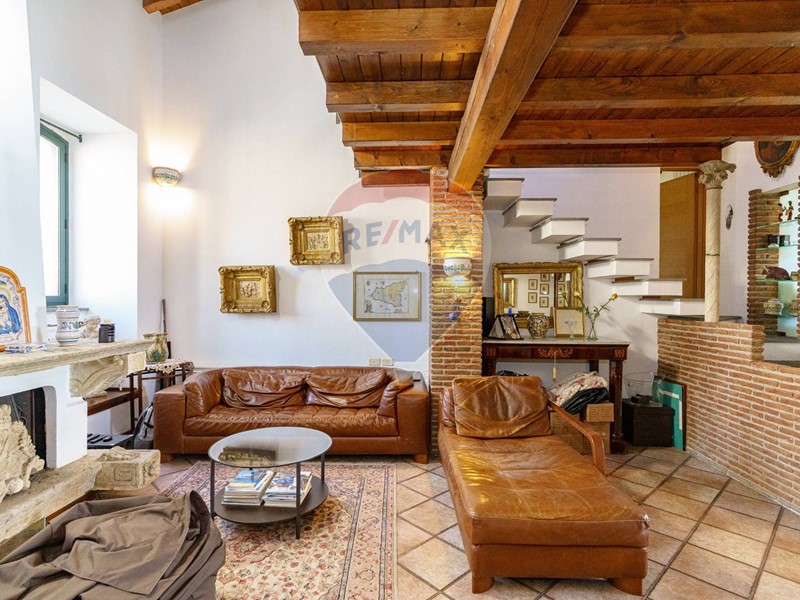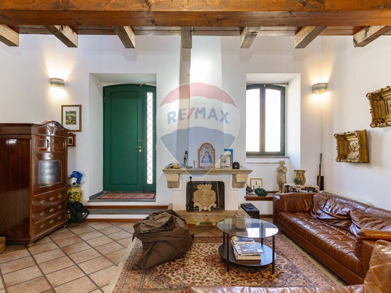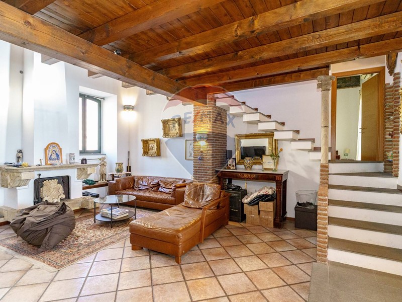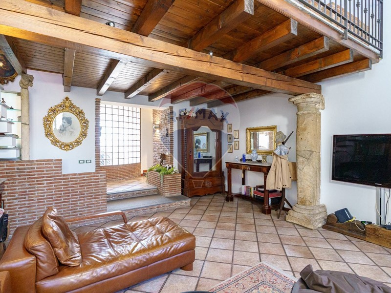 Al piano terra si trova un luminoso soggiorno arredato con eleganza, dotato di camino e grandi finestre e scala elegante che porta al piano superiore.