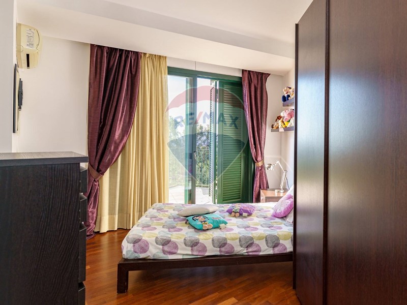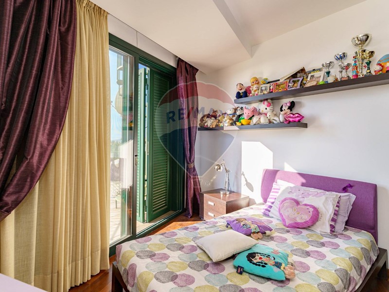 Al primo piano si trovano le altre due camere da letto, entrambe spaziose e arredate con gusto di cui 1 con bagno in camera e cabina armadio con terrazzino con vista mare.