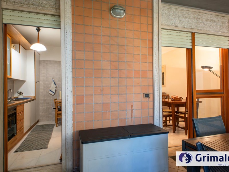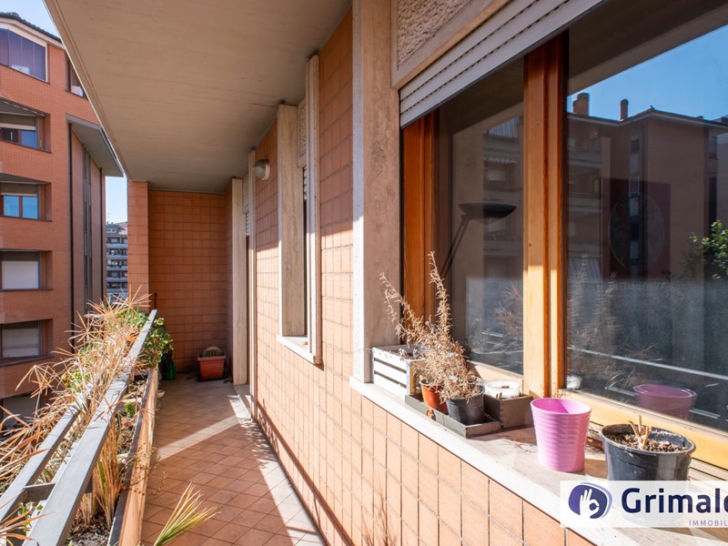 L'unità abitativa è composta da soggiorno, dove l'ampia porta finestra fa da protagonista aprendo lo sguardo sul terrazzo, la cucina separata con porta scorrevole e porta finestra ed uscita sul medesimo terrazzo, disimpegno con armadio a muro per la zona notte che ospita due camere da letto, entrambe con affaccio sull'ampio balcone, doppi servizi, ripostiglio esterno.