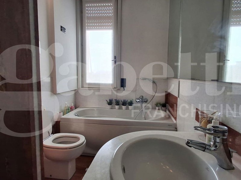 L'appartamento presenta pavimenti in parquet a listoni in tutti gli ambienti ad eccezione dei bagni, in cui troviamo marmo di Carrara rosso Verona, serramenti in legno con tapparelle, impianto di climatizzazione con pompa di calore, porta blindata.