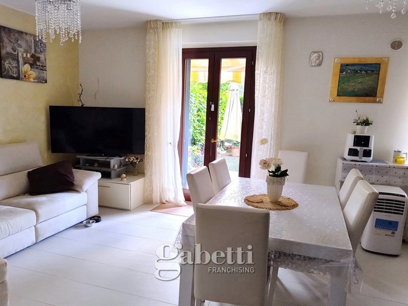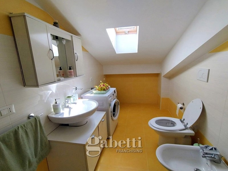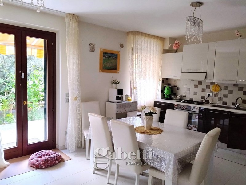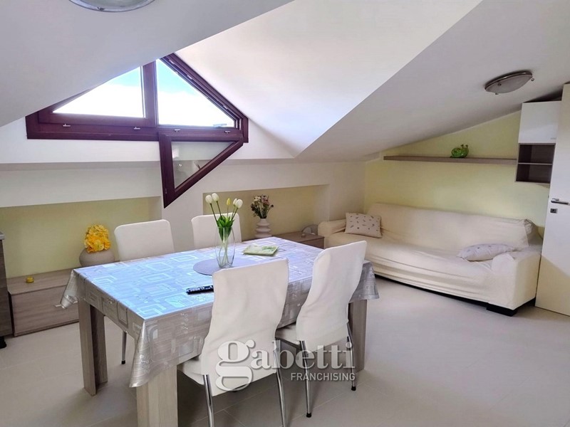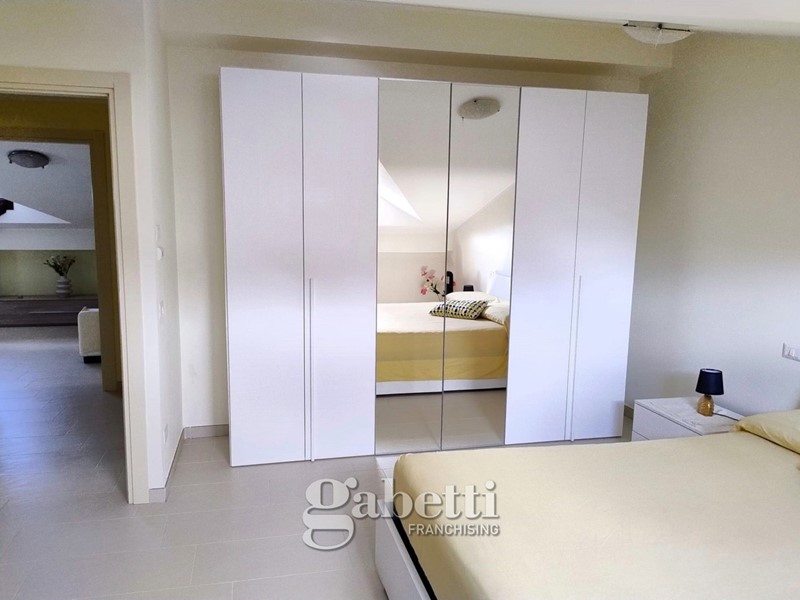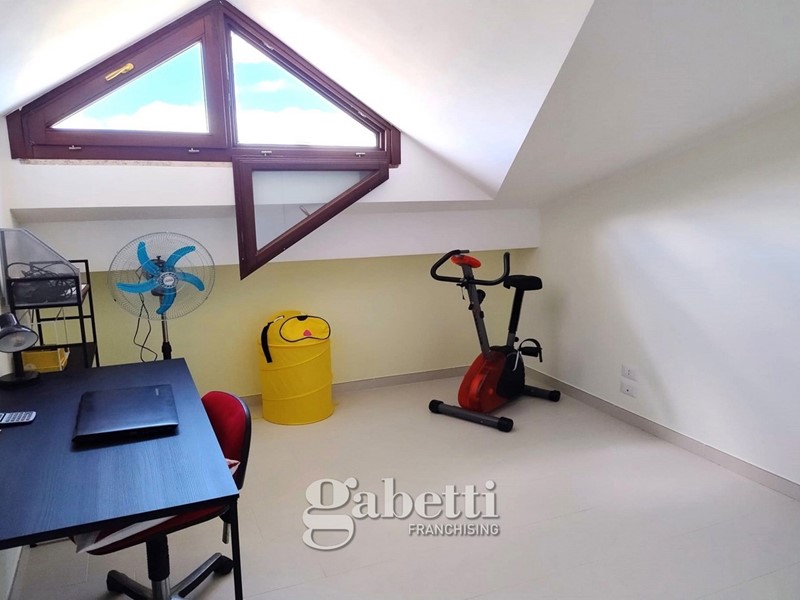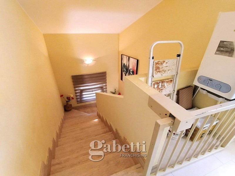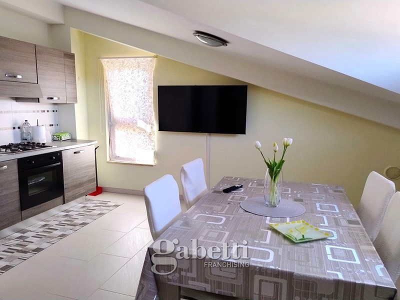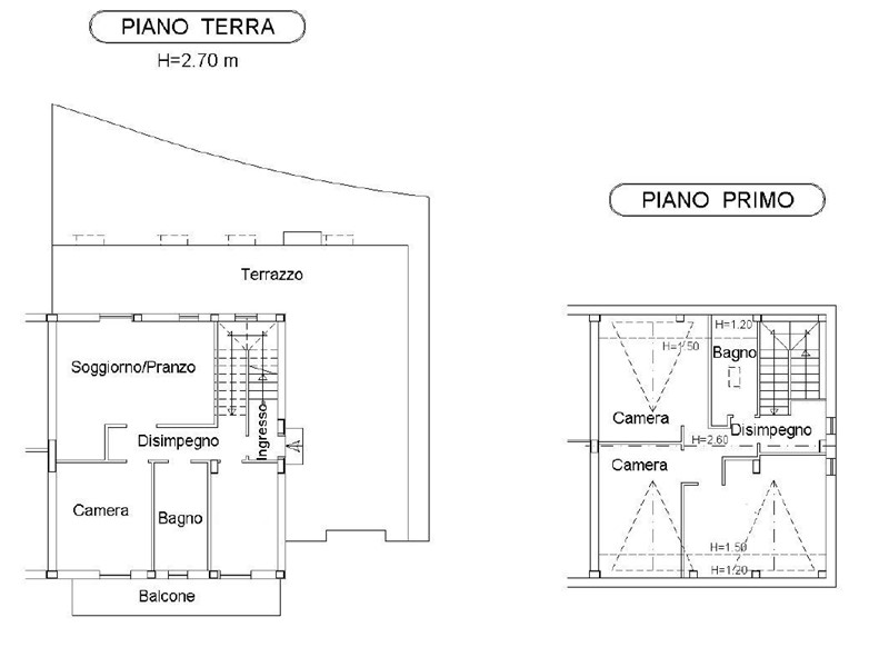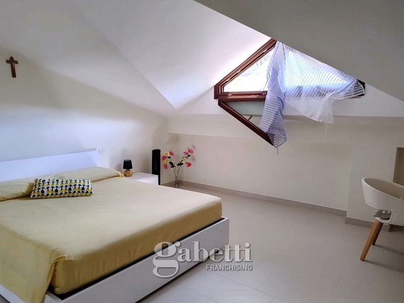 Internamente la soluzione si compone al piano terra da soggiorno con angolo cottura, camera matrimoniale, cameretta, bagno, ripostiglio e un balcone. Salendo al primo piano troviamo un secondo appartamento mansardato composto anch'esso da soggiorno con angolo cottura, camera matrimoniale, cameretta e bagno.