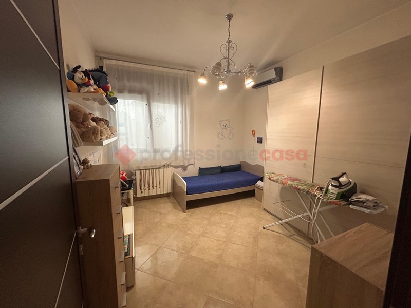 L'appartamento, di circa 150 mq, si apre su una luminosa zona giorno composta da un ampio soggiorno/pranzo e cucinotto separato. Un disimpegno conduce alla zona notte, ben separata dal resto della casa, che comprende una camera matrimoniale coibentata, una cameretta e un ulteriore vano attualmente adibito a studio. Completa la zona notte un bagno finestrato e l'impianto di climatizzazione.