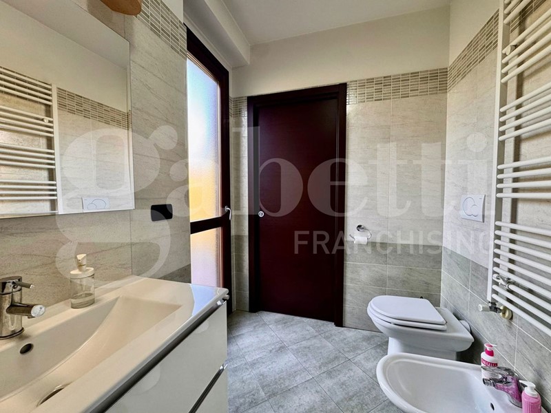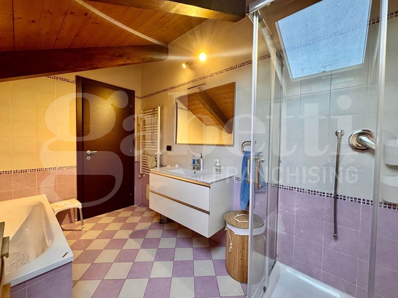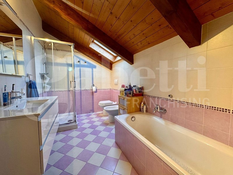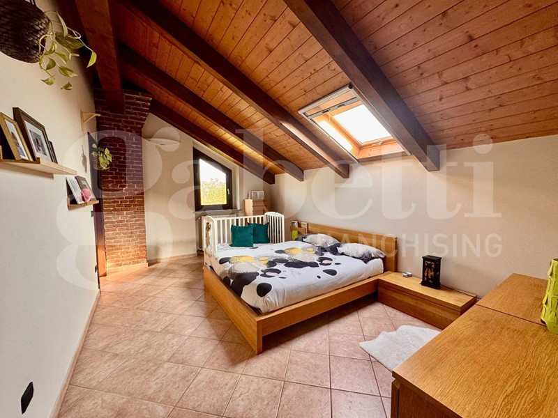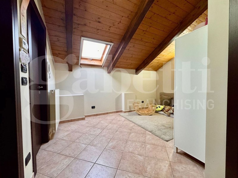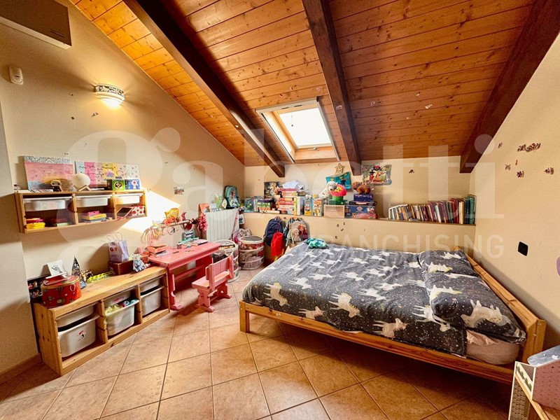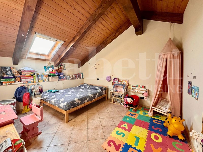 Mansarda con l'abitabilità e tetto in legno a vista di due ampie camere, servizio e cabina armadi (volendo trasformabile in terza camera).