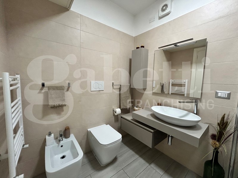 Proponiamo in vendita un luminoso appartamento di 104 mq, situato al primo piano di una palazzina ben tenuta e dotata di giardino condominiale. L'immobile è stato completamente ristrutturato all'inizio del 2020 con finiture moderne e materiali di qualità.