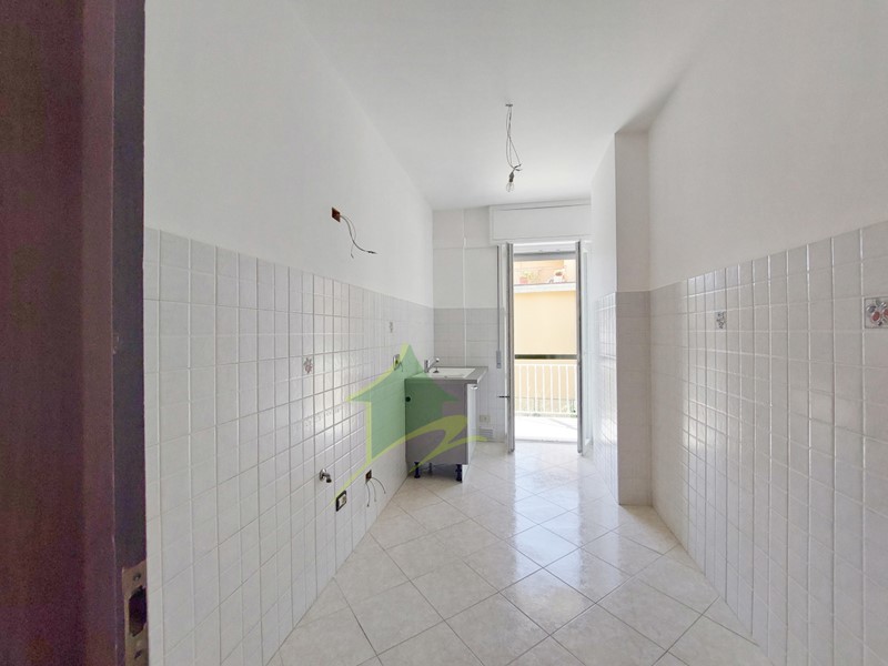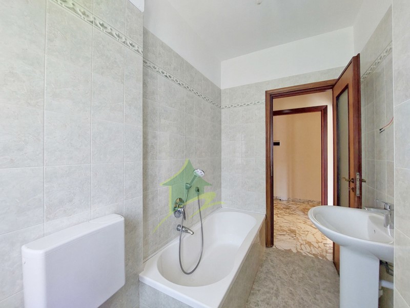 L'appartamento si trova al primo piano con ascensore e si compone di 88 mq abitabili così distribuiti: ingresso e soggiorno con pavimento in marmo, cucina abitabile, due camere da letto con parquet e due bagni completi. Il fiore all'occhiello della proprietà è l'ampio terrazzo di 75 mq con vista mare ed esposizione a sud-ovest, che garantisce luminosità durante tutto il giorno. Gli infissi sono dotati di doppi vetri e l'immobile è completato da una cantina di 4 mq.