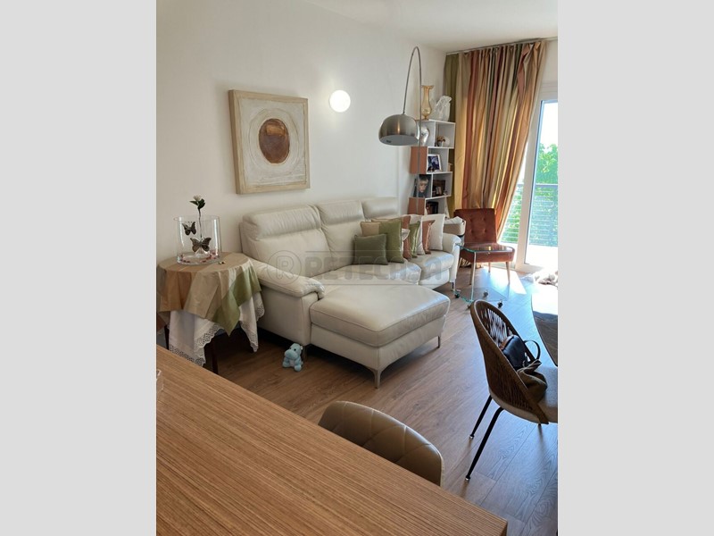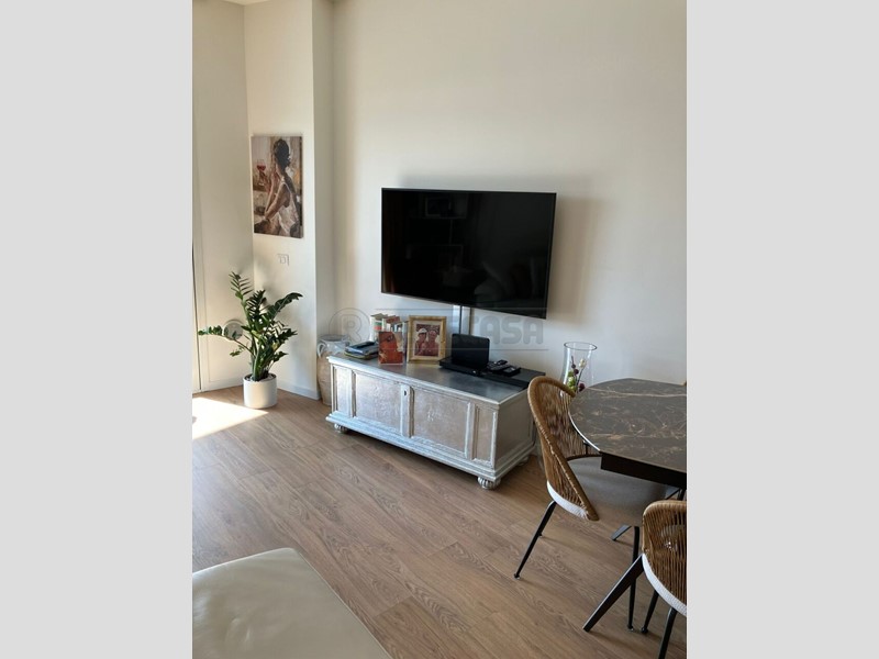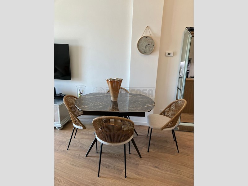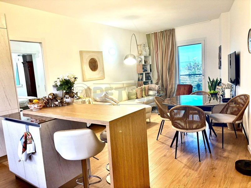 L'appartamento si apre sull'atmosfera luminosa ed accogliente del soggiorno, moderno e raffinato, con cucina a vista perfettamente integrata nello spazio ideale per chi ama condividere momenti conviviali.