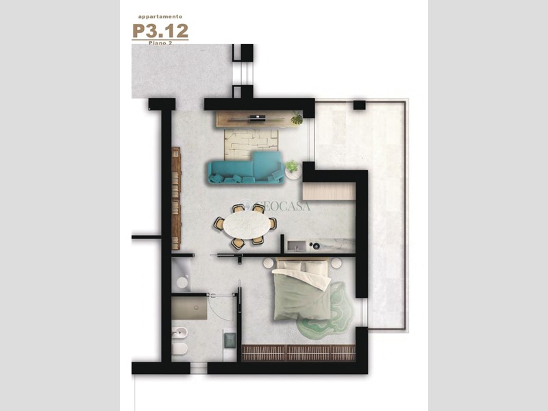 BRAGARINA-LA PIANTA. In complesso di nuova costruzione proponiamo appartamento al piano SECONDO così composto: ingresso in ampio soggiorno openspace con angolo cottura , disimpegno camera matrimoniale, bagno finestrato Dal soggiorno e dalla camera si accede ad un ampio terrazzo con loggia . L'immobile progettato secondo i criteri di efficienza energetica è dotato di infissi con doppio vetro, tapparelle elettriche in alluminio coibentato così come sono coibentati i cassonetti filo muro, murature perimetrali con mattone supertermico, impianto di riscaldamento a pavimento centralizzato, impianto fotovoltaico per le forniture condominiali, rifiniture e accessori come rubinetterie o placche di marca italiana, portone blindato. Possibilità di acquisto a parte di posti auto,box e cantine.