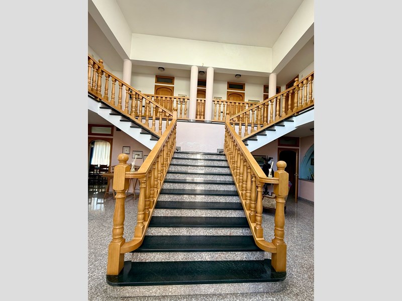 Attraverso un’imponente e scenografica scala in stile americano si accede al primo piano, dove si trovano una seconda camera matrimoniale con bagno privato, quattro camerette, un ulteriore bagno.
