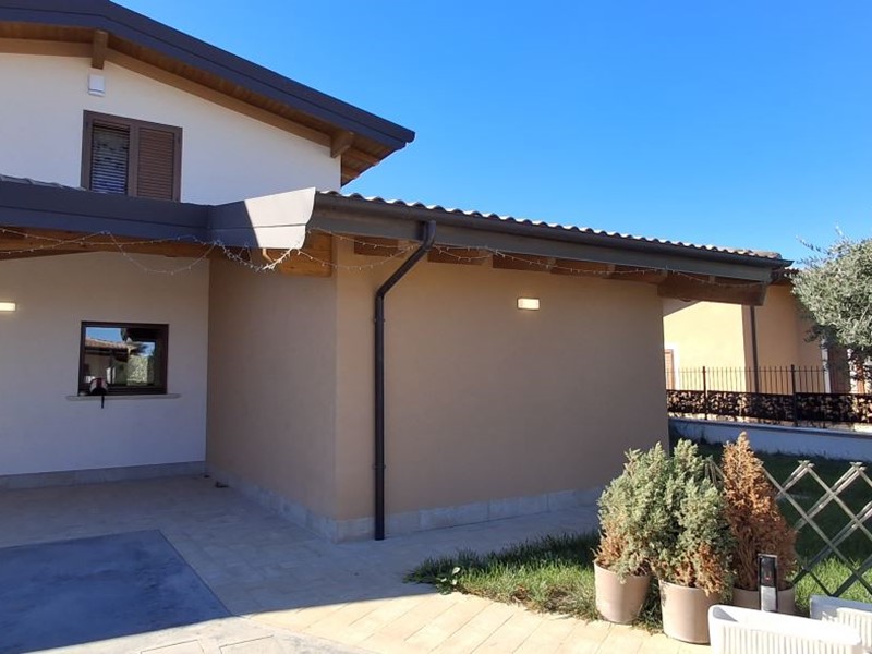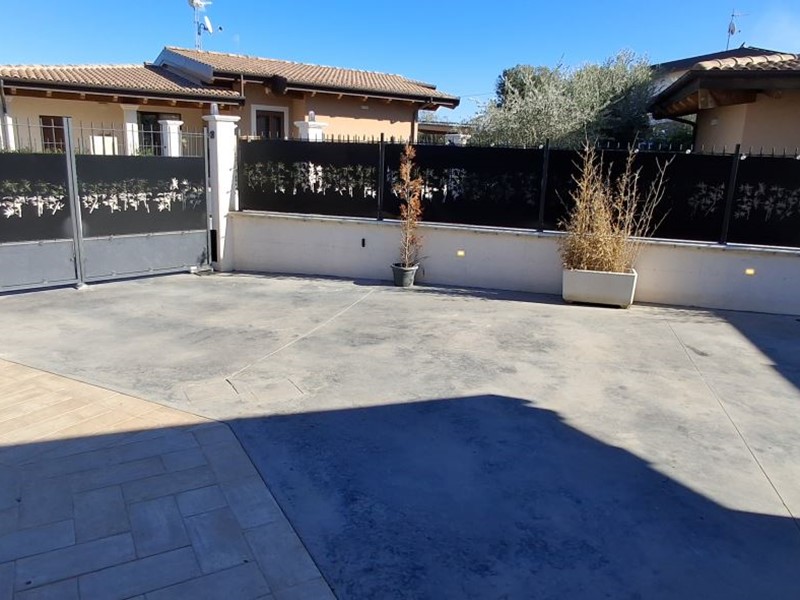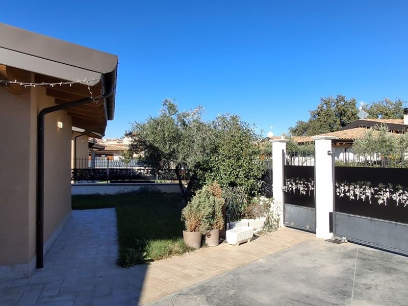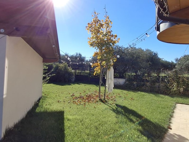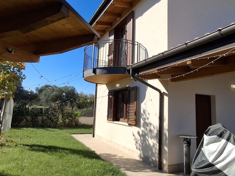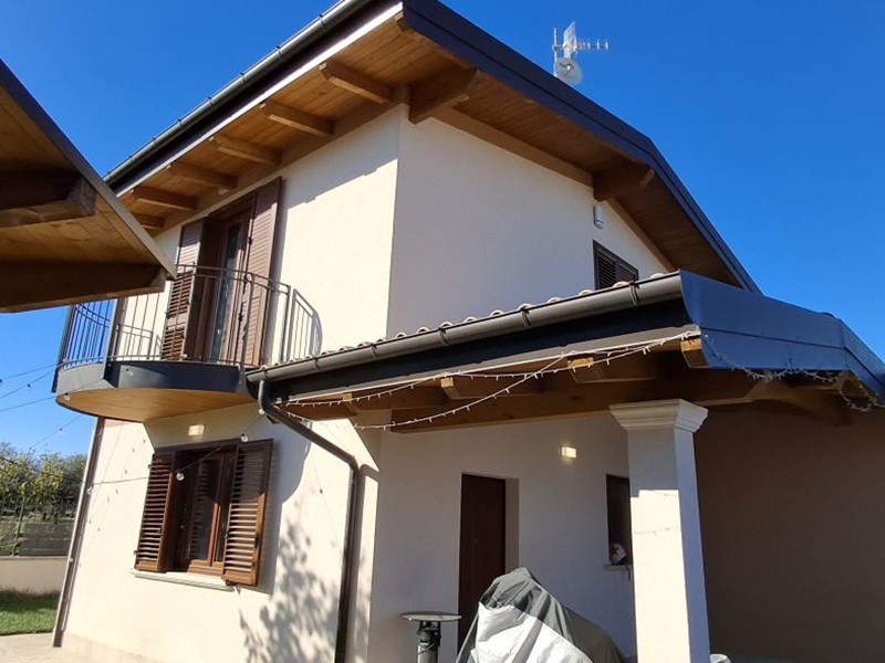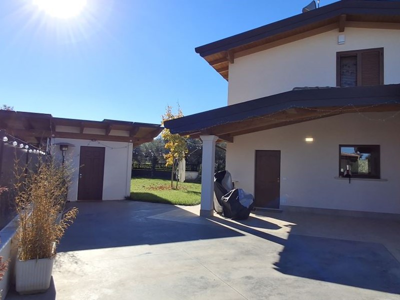 Villa singola nel recentissimo Complesso and quot;Residence AZZURRA and quot;, con vasto giardino perimetrale recintato, accessi carrabile e pedonale e locale accessorio multiuso.\nIl Residence AZZURRA è stato realizzato in Via Fossanelli, zona circondata da verde naturale e campagne ma allo stesso tempo a vicinanza immediata con il centro di Cepagatti, ed è costituita da sole ville singole indipendenti, aventi strada di accesso centrale in comune oltre a parcheggio pubblico betonellato a confine con la strada comunale.\nLa villa in vendita è stata edificata con struttura portante in legno X-LAM coibentato e dotata di caratteristiche tali da fornirle una classe energetica elevata.\nAccesso carrabile e pedonale che accompagnano al portico di ingresso per accedere all'abitazione; Piano Terra con ampio e luminoso open space e affaccio diretto al giardino esterno, angolo cottura e ripostiglio / locale tecnico, disimpegno di collegamento a servizio igienico e camera da letto; scala interna in legno a vista che conduce al livello superiore in cui sono collocati secondo bagno, seconda camera da letto oltre ad una zona studio, totalmente adatta anche per terza camera, perimetrata da parapetto in vetro con vista sulla scala e affaccio esterno su balcone con vista panoramica.\nFunzionalità dei servizi igienici con doccia al Piano Terra e vasca al Piano Primo.\nEsternamente giardino completamente recintato, area barbecue, pavimentazione pedonale dal cancello di accesso e perimetrale su tutto l'edificio, massetto industriale carrabile, accessorio di pertinenza adibito a rimessa / sala hobby completa di porta blindata, climatizzazione e copertura con impianto fotovoltaico da 3,00 Kw a servizio dell'abitazione.\n - Maggiori Dettagli: Climatizzato, Porta blindata, Cucina Abitabile, Sistema di allarme, Videocitofono