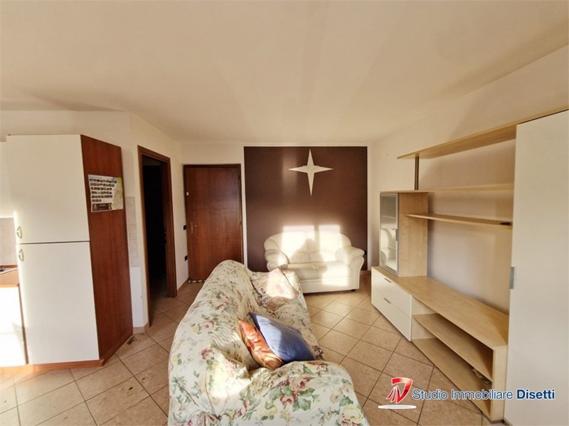 In posizione centrale e panoramica proponiamo in vendita appartamento sito al primo piano composto da soggiorno con angolo cottura, una camera, bagno, disimpegno e balcone.\nTermoautonomo. Area verde comune.\n\n