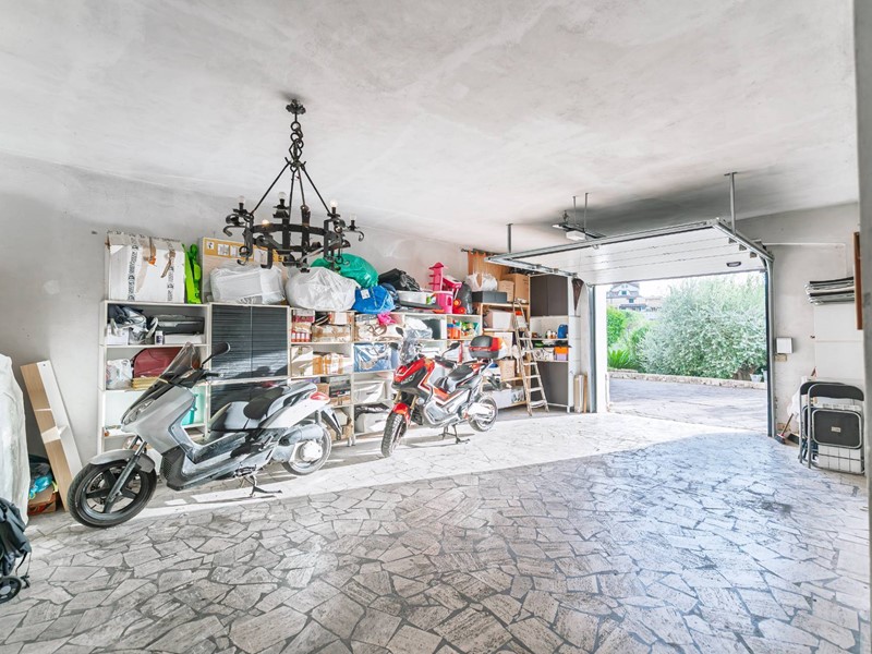 Al piano terra si trova un ampio quadrilocale corredato da una corte esterna di 150 mq e da un box auto di 100 mq al piano seminterrato.