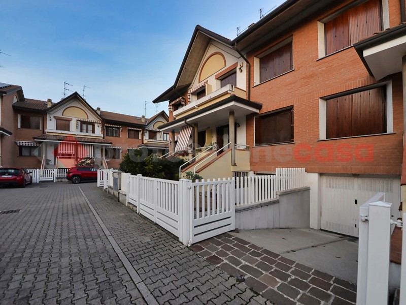 In vendita a Paderno Dugnano (MI), inserita in un residence edificato nel 1995, proponiamo una villa a schiera di 135 mq così distribuiti: piano rialzato di 50mq con soggiorno, ampia cucina abitabile con accesso a spazio privato esterno di 60 mq e bagno con doccia; piano primo di 50 mq con tre camere da letto di cui una con balcone e bagno con vasca. Al piano seminterrato un locale hobby suddiviso in due ambienti dai quali è possibile accedere allo spazio esterno privato.