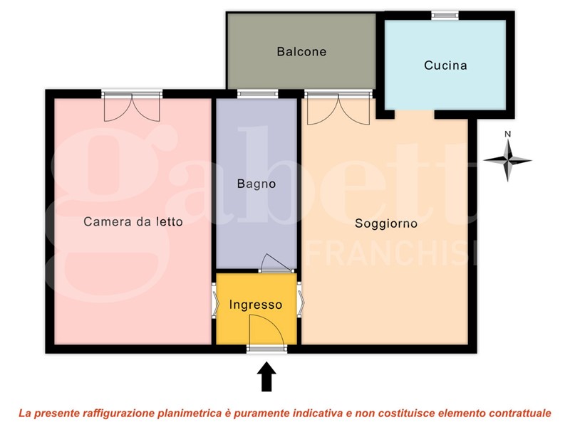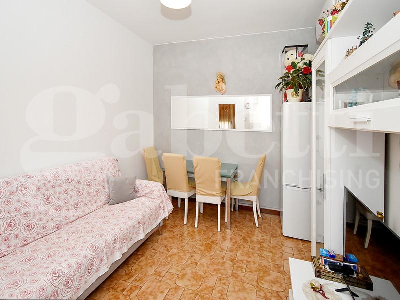 Ingresso su disimpegno, soggiorno con balcone, cucinotto separato, bagno finestrato e ampia camera da letto.