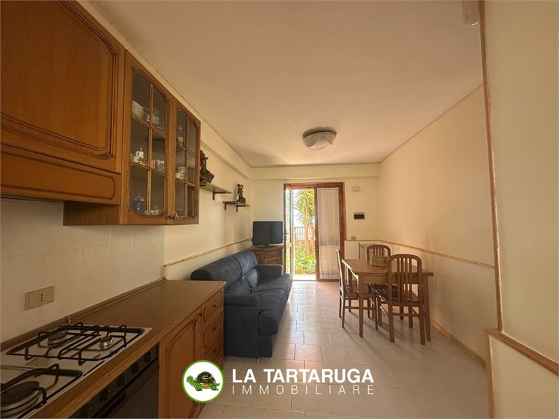 Sant'Alessio Village: nel panoramico residence immerso nel verde, a circa 1 km dalla spiaggia di Sant'Alessio Siculo, appartamento al piano terra di circa 50 mq interni più giardinetto antistante e cortile retrostante. Ingresso indipendente attraverso il giardinetto, cucina-soggiorno con doppia esposizione (uscita sul cortile sul retro), disimpegno, camera da letto e cameretta bagno con finestra. Infissi interni ed esterni in legno. L'appartamento permette l'accesso per diveramente abili - non ci sono scale, si può arrivare con la macchina davanti al cancello. \n\nPL:Sant'Alessio Village: w panoramicznej rezydencji otoczonej zieleni and #261;, oko and #322;o 1 km od pla and #380;y Sant'Alessio Siculo, mieszkanie na parterze o powierzchni oko and #322;o 50 m2 wewn and #261;trz oraz ma and #322;y ogród z przodu i dziedziniec z ty and #322;u. Niezale and #380;ne wej and #347;cie przez ogródek, kuchnia-salon z podwójn and #261; ekspozycj and #261; (wyj and #347;cie na tylny dziedziniec), przedpokój, sypialnia i and #322;azienka z oknem. Ramy okienne wewn and #281;trzne i zewn and #281;trzne wykonane z drewna. Mieszkanie jest dostepne dla osob niepelnosprawnych ruchowo - nie ma schodow i mozna podjechac samochodem bezposrednio pod bramke wjazdowa.