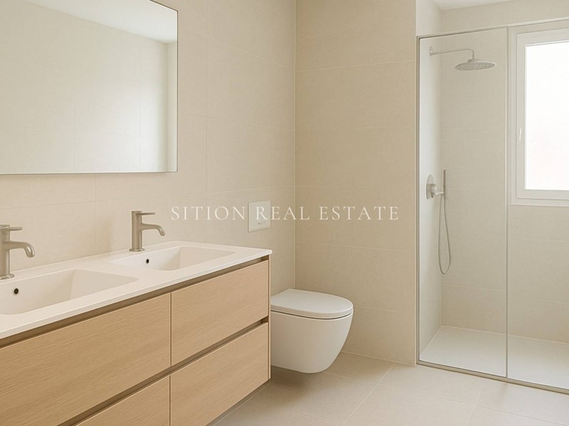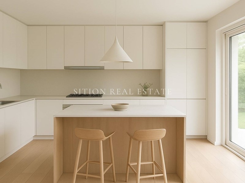 La zona giorno si apre su un soggiorno doppio di grande respiro, con accesso diretto al terrazzo e al giardino privato, spazi che creano una piacevole continuità tra interno ed esterno.
