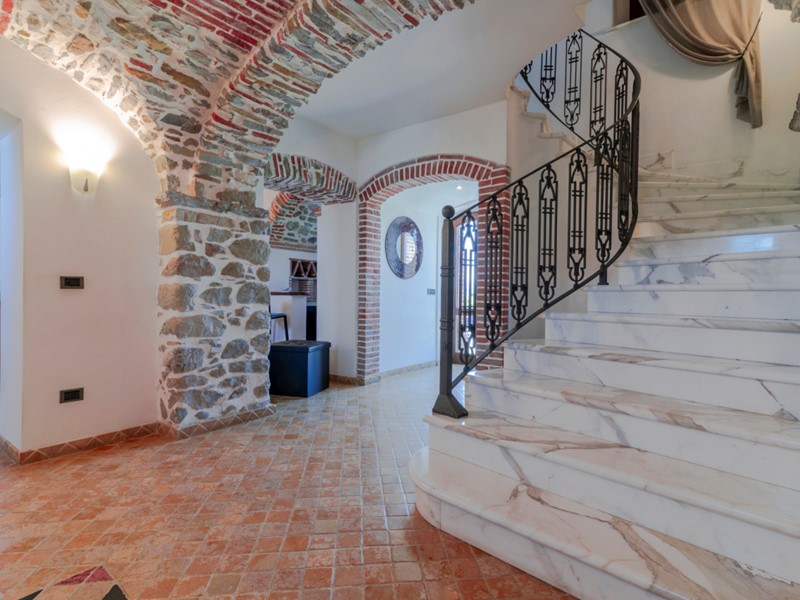SARZANA - (SP) - immerso nel cuore della Val Di Magra con le sue bellezze paesaggistiche, crocevia di importanti vie di comunicazione tra Liguria, Toscana ed Emilia Romagna, elegante complesso residenziale composto da due edifici residenziali. Il casale principale, interamente ristrutturato mantenendo i particolari dell'epoca in perfetto accordo fra stile rustico e modernità, si sviluppa su due livelli ed è composto al piano terra da ingresso ampio su soggiorno con camino, cucina in muratura, sala da pranzo, dispensa e bagno; con comoda scalinata in marmo si va al piano primo ove vi sono tre camere matrimoniali di cui due con bagno privato con doppio lavello e vasca idromassaggio, una camera singola ed un bagno finestrato con doccia. Adiacente al casale c'è una dependance di circa 79 mq composta da soggiorno con a. k. e ripostiglio al piano terra e camera matrimoniale, camera singola e bagno finestrato al piano primo. Completano la proprietà un giardino finemente curato di mq 1500, ulteriore terreno di mq 1300 circondante, una cantina ed il vano sottotetto. Il complesso è completamente recintato, ha accesso con cancelli elettrici, porte-finestre che affacciano sul giardino in parte piantumato. Il casale è rifinito con materiali di pregio: marmo di carrara, marmo antichizzato nella zona giorno, infissi in legno. Riferimento Agenzia 6853 DiLeoImmobiliare