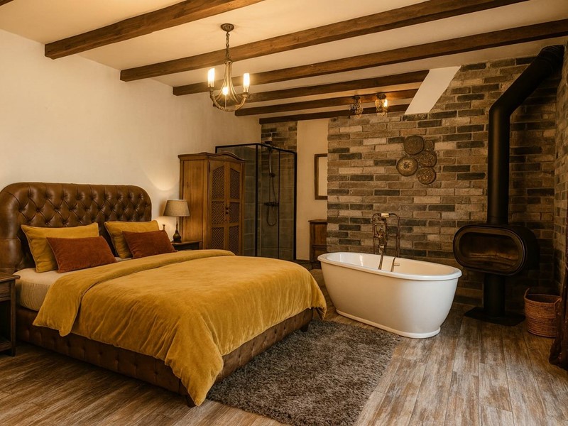 Riscaldamento autonomo con stufa a pellet e termosifoni in ghisa + camino.