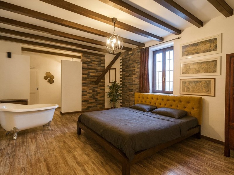 Ingresso al piano terra con ampia zona open space e camera matrimoniale + bagno di servizio.