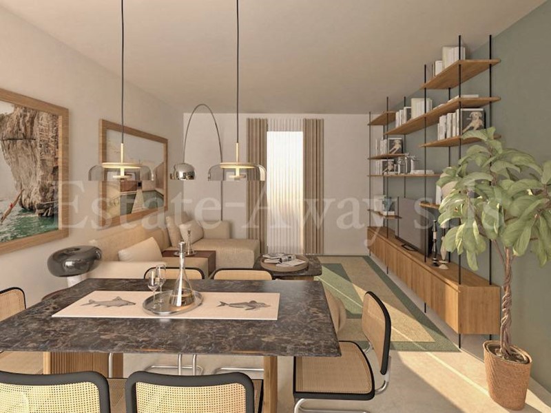 Lappartamento si distingue per una distribuzione moderna e funzionale: ingresso, zona living vista mare con cucina a vista, disimpegno, camera matrimoniale con vista mare, bagno, master bedroom con balcone privato, dressing e bagno en-suite.