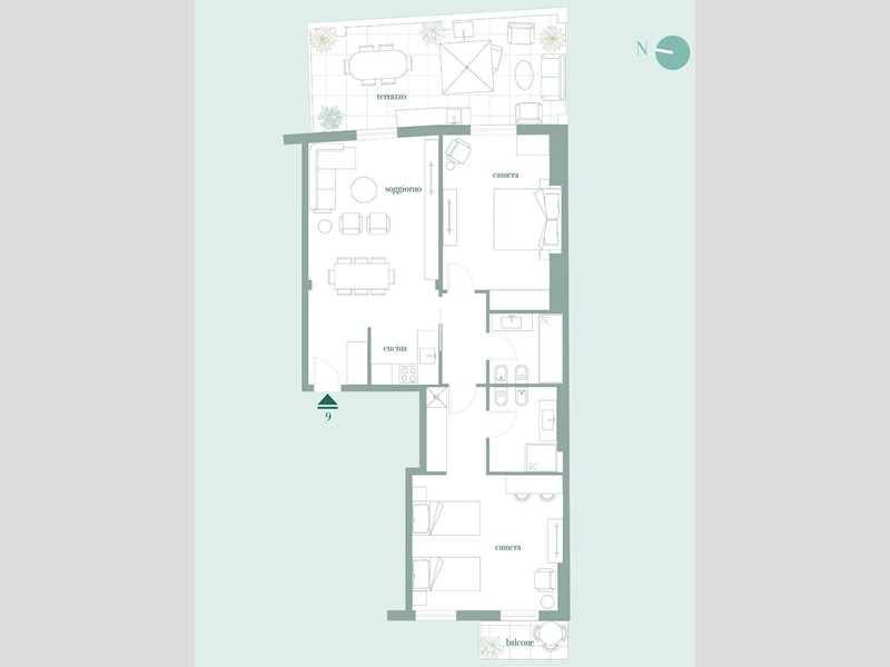 · Spazi esterni: 25 mq tra terrazzo e balcone