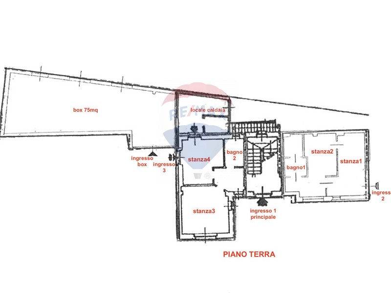 La nuova distribuzione degli spazi potrebbe accogliere un ampio soggiorno con cucina a vista, due camere da letto, doppi servizi, locale caldaia/lavanderia, ripostiglio e un grande box di circa 75 mq, ideale per più veicoli o per chi cerca spazio aggiuntivo.