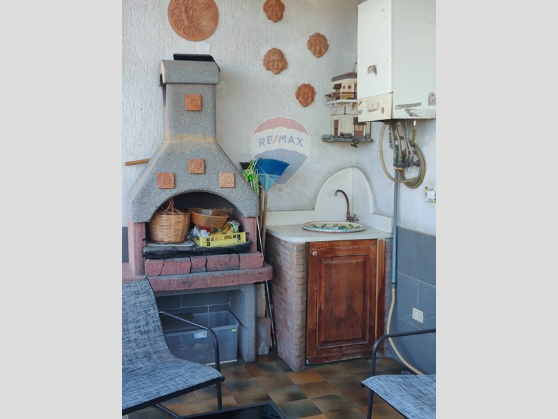 d) Più avanti sulla sinistra troviamo una grande e luminosa cucina super abitabile con grande finestra e porta per balconeterrazzino, che ospita barbecue in cemento;