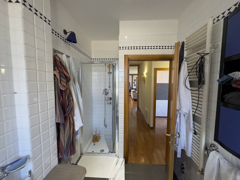 Labitazione principale, di circa 210 mq, è attualmente suddivisa in due unità abitative indipendenti facilmente collegabili come in origine in un unico appartamento, perfette per una grande famiglia, per chi desidera ospitare i propri cari o per chi cerca una soluzione abitativa con doppio appartamento. Gli interni si distinguono per luminosità, ampiezza e funzionalità, con tre terrazzi abitabili.