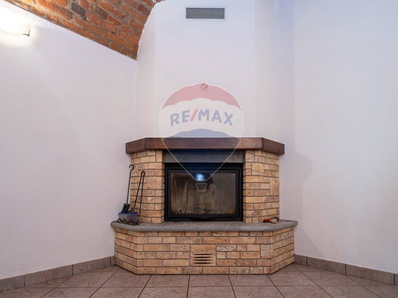 Entrando dalla porta principale al piano terra, ci troviamo nell'ampia taverna impreziosita da un camino perfetto per le serate invernali, ma che scalda anche l'intero appartamento. Al piano un bagno di servizio.
