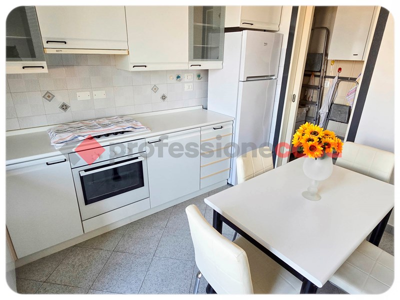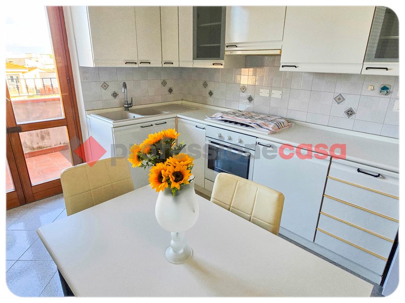 La proprietà e' cosi' composta: abbiamo la Cucina Abitabile con Ripostiglio ad uso dispensa ed il Salone con camino, dai quali si accede al Terrazzo. Il reparto notte e' composto da due Camere di cui una Matrimoniale, una Media da cui si accede ad un secondo Terrazzo Abitabile ed il Bagno finestrato con doccia in muratura. Dal disimpegno notte inoltre si accede, tramite botola, a un comodo secondo Ripostiglio ideale come spazio di deposito aggiuntivo. Completa la proprieta' un Garage di circa mq.18 dotato di acqua corrente e accessibile tramite cancello automatico con radiocomando, situato al piano terra con diretto accesso alle scale condominiali. Il Riscaldamento e' Autonomo (caldaia Lamborghini) con radiatori in alluminio piu' impianto di climatizzazione (caldo-freddo) e le spese condominiali mensili ammontano a circa ? 40 e sono comprensive di luce, pulizia scale, amministratore, manutenzione cancello elettrico e addolcitore. Gli infissi esterni sono in legno con persiane e zanzariere ed i pavimenti sono in ceramica. L'impianto di allarme, già disponibile, può essere facilmente installato, contribuendo alla sicurezza. A.P.E.: Classe G, Ipe 175 Kwh/m2anno. - Rif. 1287 -