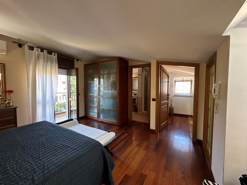 CASILINA - FINOCCHIO - In Via Quarto Grande, in zona tranquilla e residenziale ma allo stesso tempo ben collegata e servita proponiamo la vendita di un ampio appartamento completamente ristrutturato sviluppato su due piani, posto all'interno di una piccola palazzina di soli 2 piani in buono stato. Al piano primo troviamo un accogliente ingresso che ci conduce al salone doppio, cucina abitabile, sala da pranzo, due camere da letto, cameretta, servizio, ampio terrazzo panoramico e balcone. Al piano secondo, accessibile tramite scala interna, c'è un ulteriore camera con cabina armadio, servizio e balcone. Completa la proprietà un ampio garage privato di circa 27 mq ed una comoda cantina. Ottime condizioni interne, completamente ristrutturata con rifiniture e materiali utilizzati di gran pregio, pavimentazione in parquet, gli infissi con doppio vetro, grate di sicurezza, climatizzato, riscaldamento autonomo. L'esposizione, tranquilla e molto luminosa garantisce sole e tranquillità.