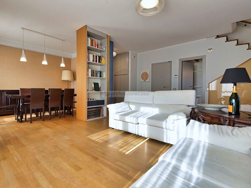 L'alloggio è distribuito su tre lati con affaccio est-sud-ovest ed è servito da ascensore su entrambi i piani.