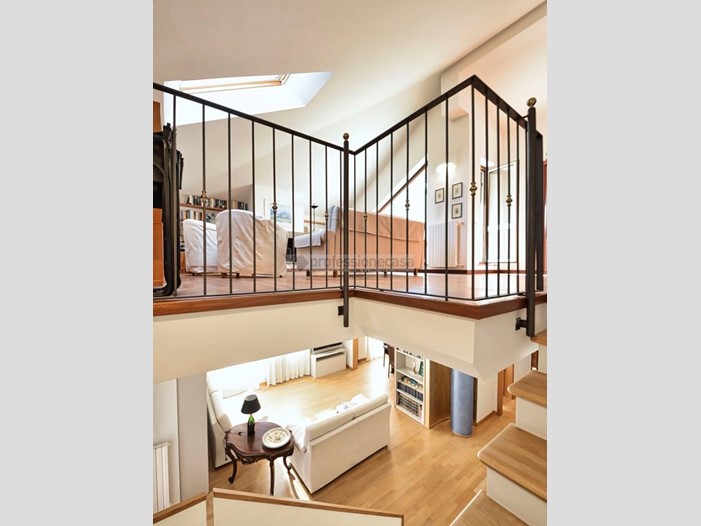 Una comoda scala a rampa, di pregevole fattura, collega i due piani.