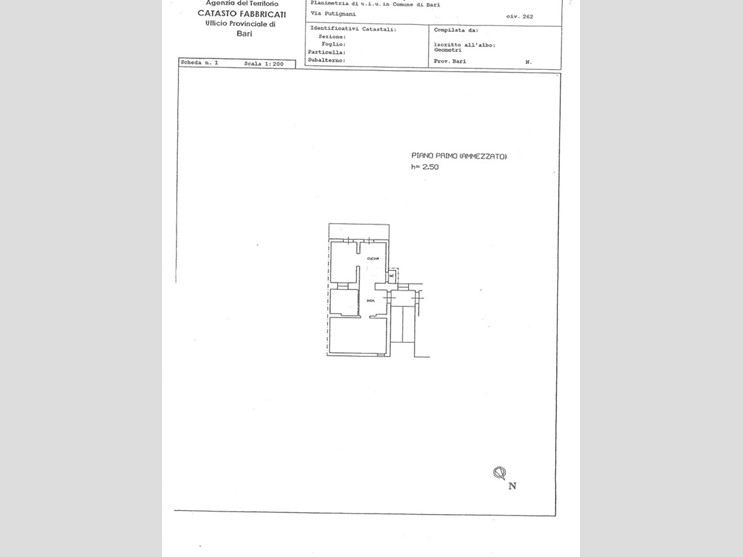 L'appartamento, posto al primo piano ammezzato, in categoria catastale A/4, è di mq. 80 ca., ha le volte alte mt. 2,50, e i pavimenti sono le originarie cementine d'epoca. E' caratterizzato dalla struttura tipica dell'epoca di costruzione e lo spazio è diviso dall'ingresso in 2 ambienti con affaccio con un bel balcone sul verde del giardino interno; 1 camera con luce indiretta; 1 camera con una finestra nel vano scale ed il piccolo bagno con finestra. L'immobile è da ristrutturare