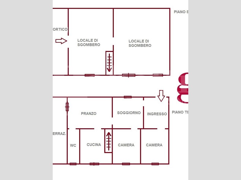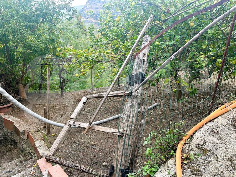 La casa è composta al piano terra da ingresso, due camere da letto, soggiorno con stufa, cucina con sala da pranzo e bagno, oltre una veranda a livello. Al piano cantina, a cui si accede sia tramite scala interna che dalla veranda, due grandi vani allo stato rustico. Al piano cantinato si accede ad una prima porzione di terreno pianeggiante adibito a giardino e successivamente alla restante parte di terreno, con andamento leggermente scosceso e suddiviso in due rasole in cui sono presenti alberi da frutto.