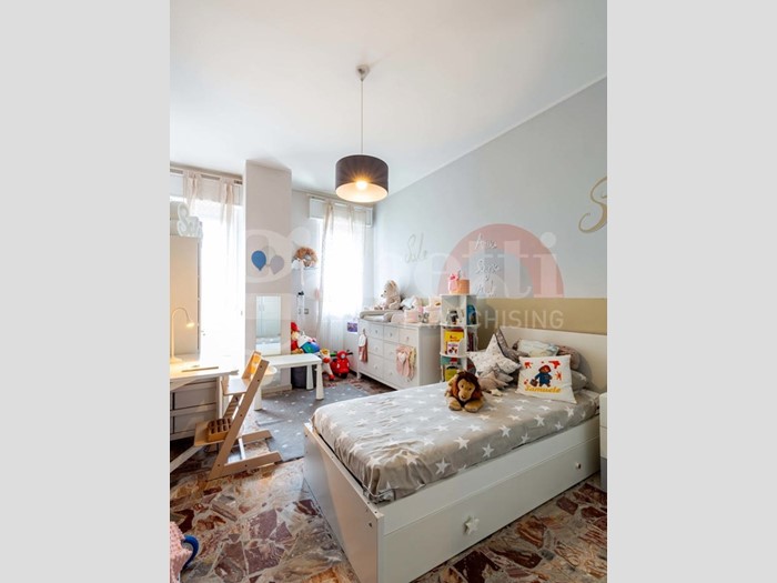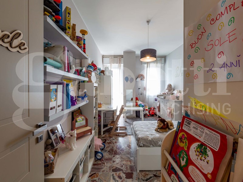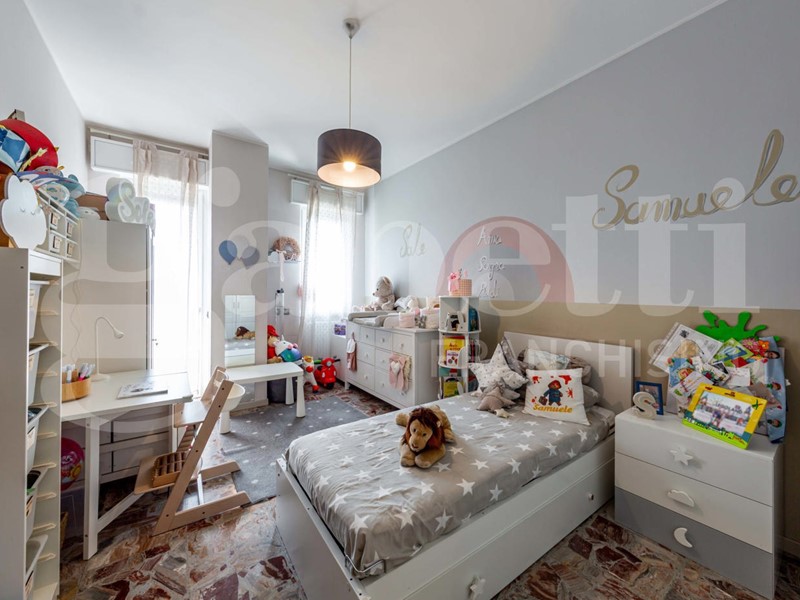 In alternativa, la grande stanza oggi utilizzata come cameretta permette, con una semplice ridistribuzione, di ricavare una terza camera vera e funzionale, ideale per famiglie numerose o per chi necessita di una stanza studio/ospiti.
