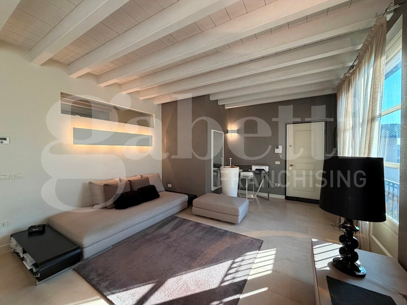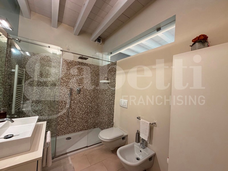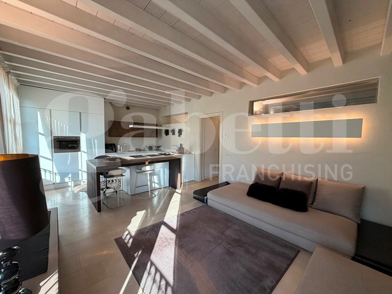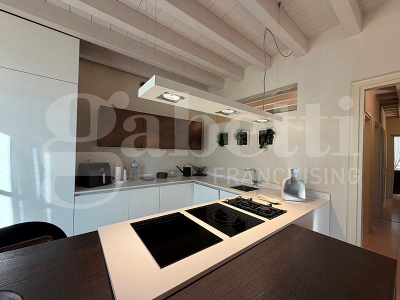 L'unità viene ceduta completamente arredata con mobili scelti con cura, permettendoti un trasloco immediato e senza stress. L'arredamento esalta lo stile moderno della ristrutturazione.