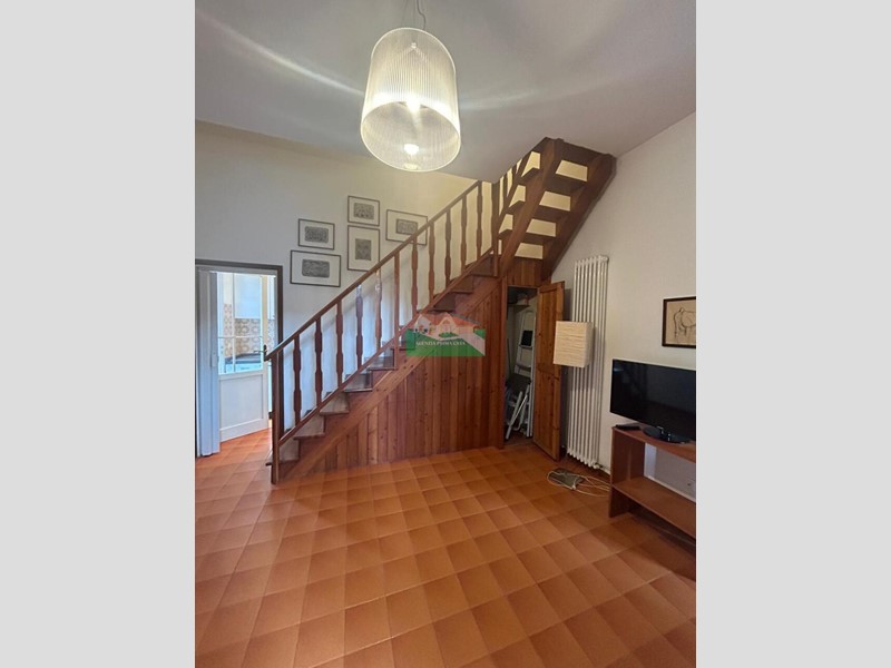 Internamente si compone da scala esterna, terrazza, ingresso su soggiorno con camino, sala da pranzo, cucinotto abitabile con secondo balcone, disimpegno notte, bagno finestrato con box doccia, camera da letto singola. Al piano superiore mansardato si compone da disimpegno, due camere da letto (matrimoniale e singola) , bagno finestrato, ampio sottotetto uso ripostiglio, studio.