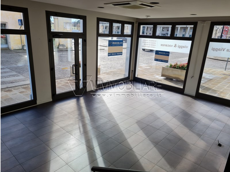 NOVENTA VICENTINA: zona centralissima negozio vetrinato ad angolo su due livelli di 108 mq comm. con due ingressi quattro grandi vetrine, servizio e ripostiglio al primo piano. Bellissima, strategica e unica posizione con vista sulla piazza e municipio. Classe B EP gl,ren 173,10 kWh/m³. Euro 240.000.