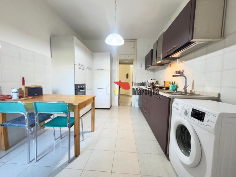 L'appartamento, in condominio signorile con portineria, è composto da ingresso su corridoio che disimpegna i locali, ampio salone, due camere da letto, cucina abitabile, riposiglio e doppi servizi. Terrazzo con esposizione Sud e balcone esposto a Nord.