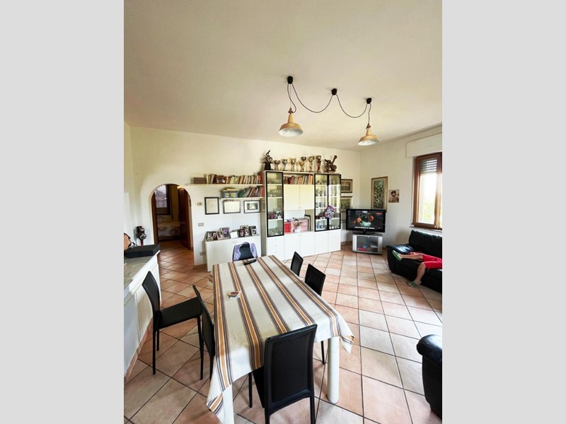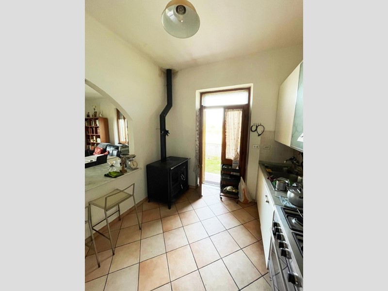 Ingresso su cucina abitabile con camino/stufa a legna, ampio soggiorno, tre camere (due matrimoniali e una singola), bagno finestrato e ripostiglio.