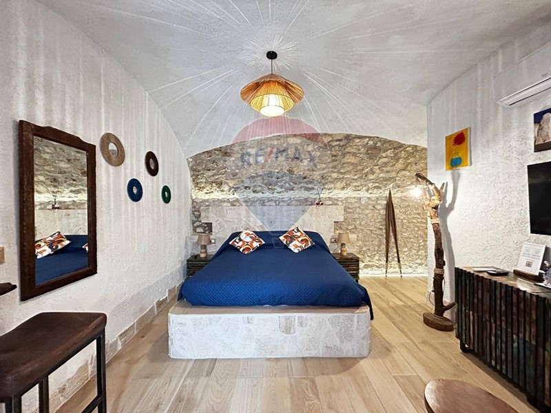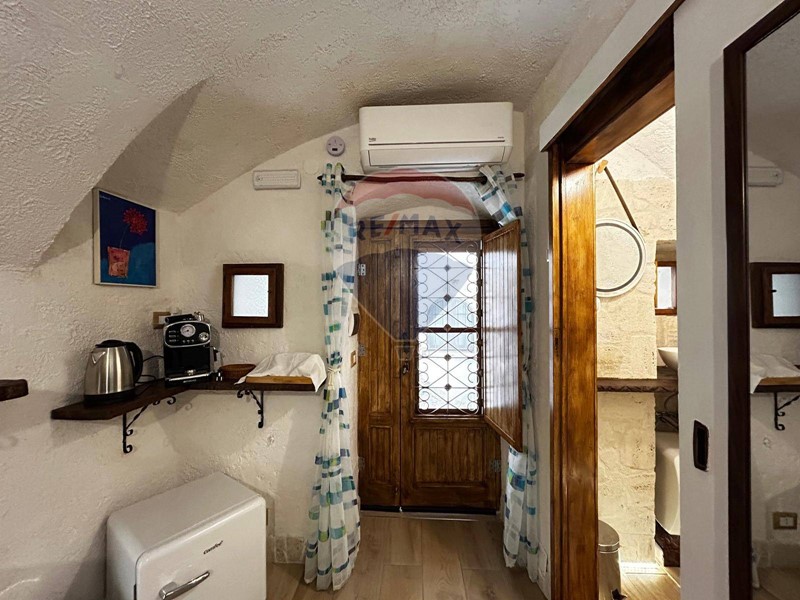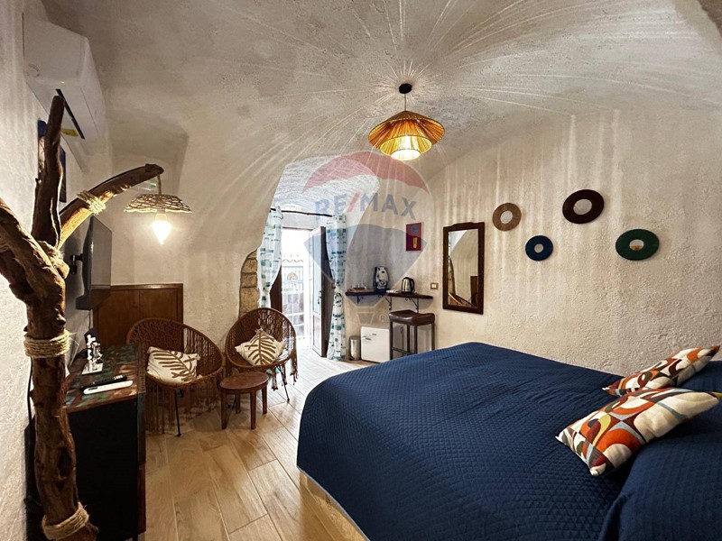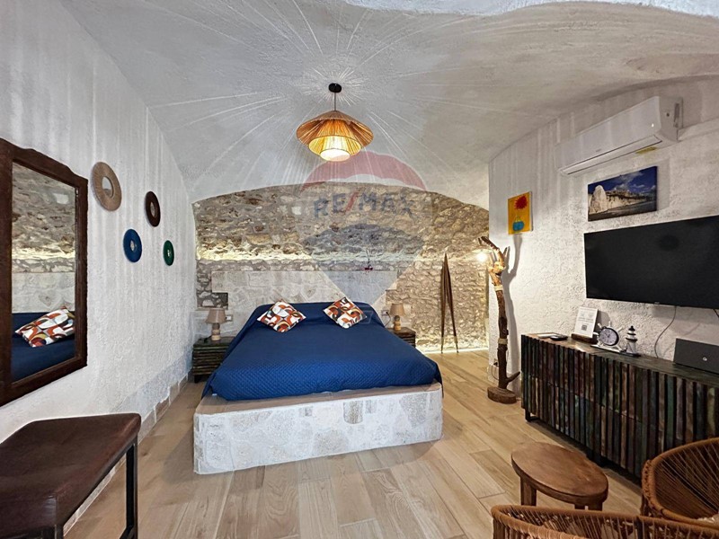 Anche questo monolocale viene venduto arredato, climatizzato e con finiture tipiche dello stile mediterraneo, che alternano pietra naturale e superfici tradizionali per un effetto raffinato e accogliente.